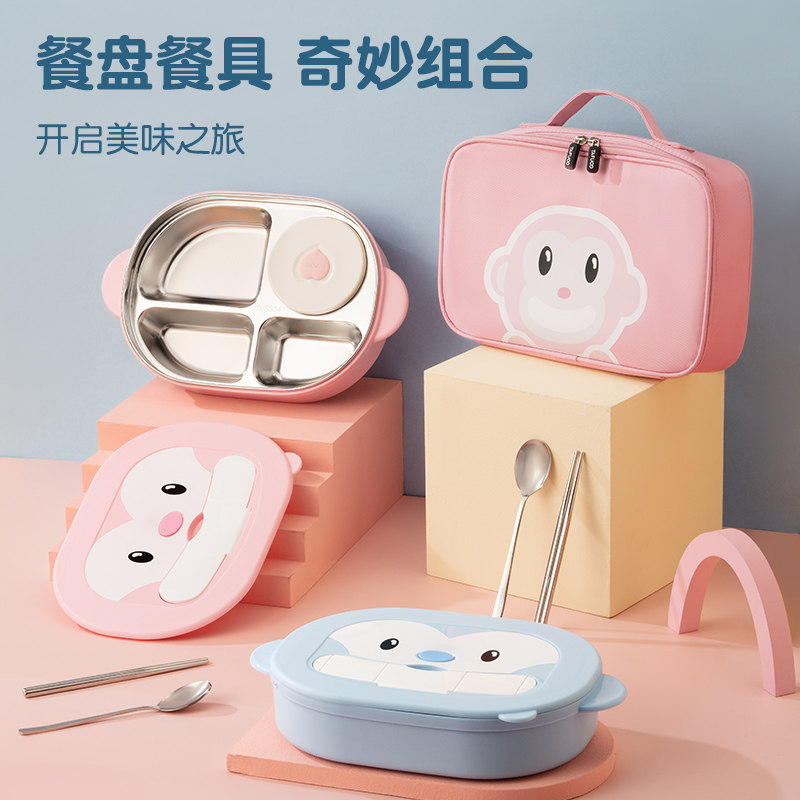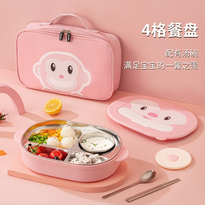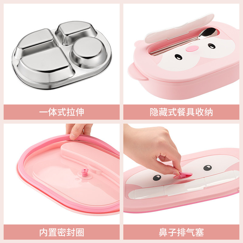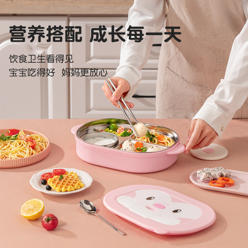泰福高304不锈钢分格饭盒小学生保温便当盒带盖餐盘可爱男女儿童