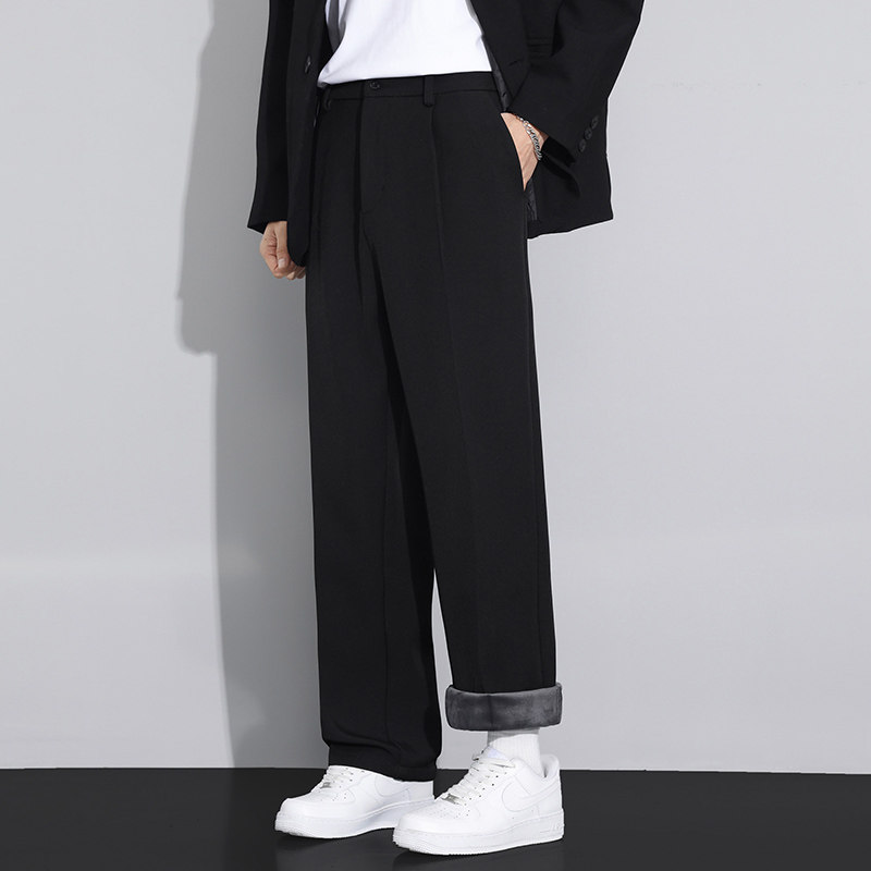 加绒长裤男士秋冬季垂坠感直筒西装裤子男款宽松阔腿加厚休闲西裤