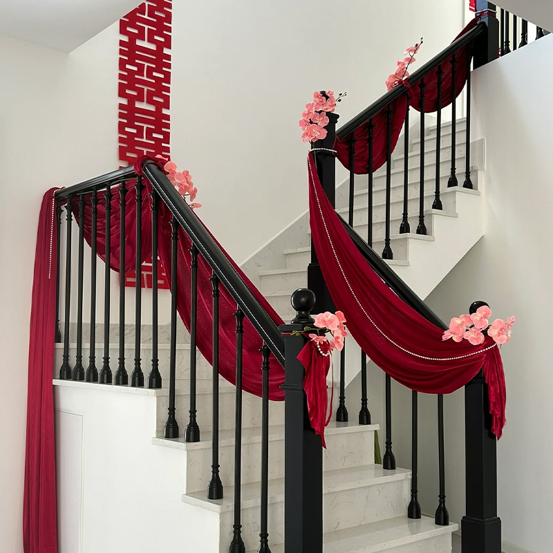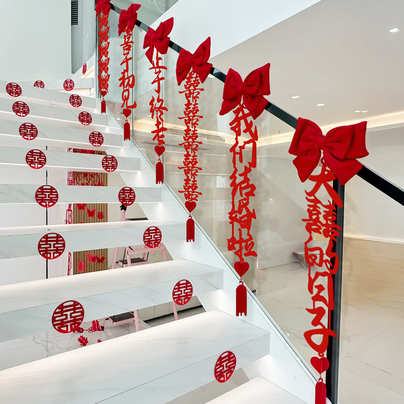 纱幔婚礼男方女方新房农村院子布幔楼梯扶手装饰结婚婚房布置套装
