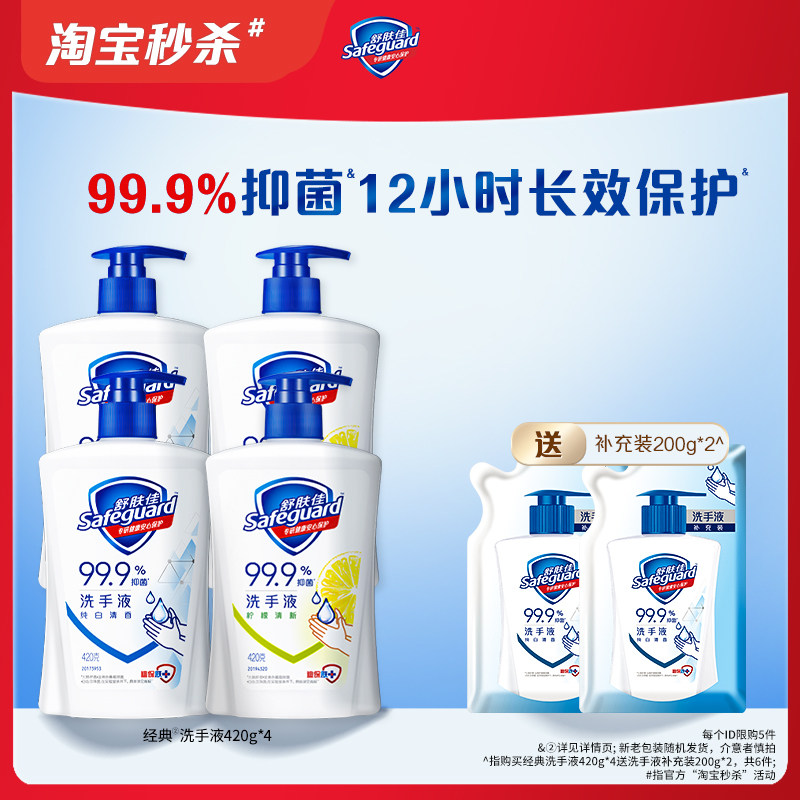 【淘宝秒杀】舒肤佳抑菌洗手液家用套组纯白清香温和清洁组合正品