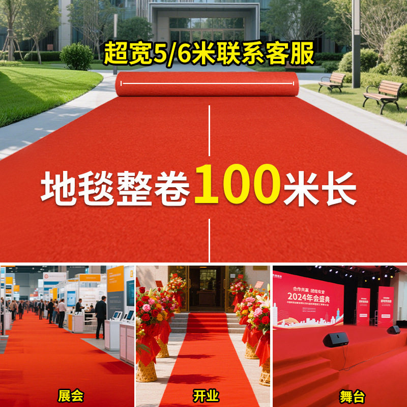 红地毯结婚喜婚庆一次性红毯铺地舞台商用开业店铺门口红色婚礼