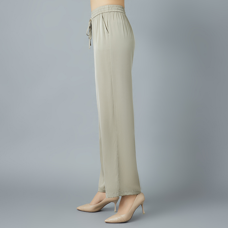 高腰宛香丝长裤桑蚕丝直筒夏装