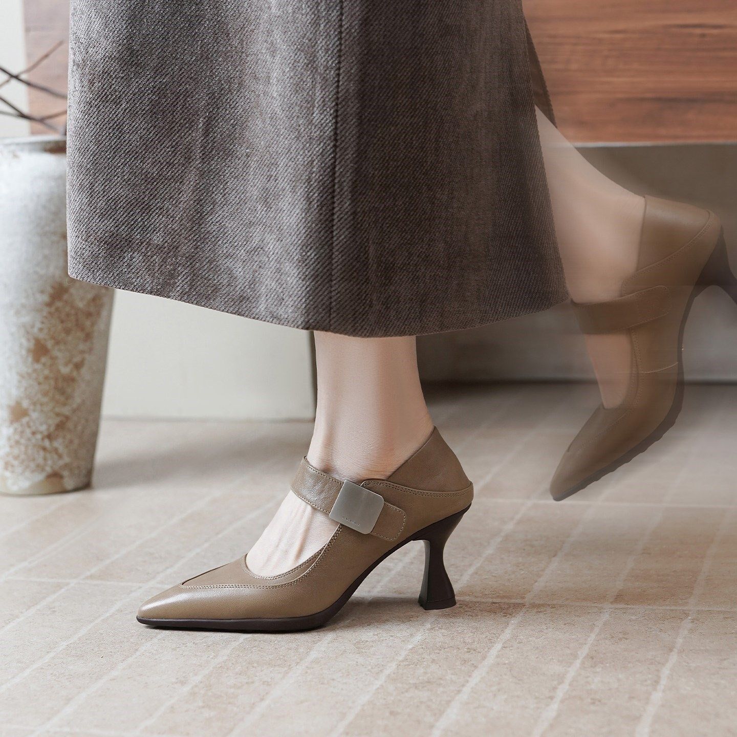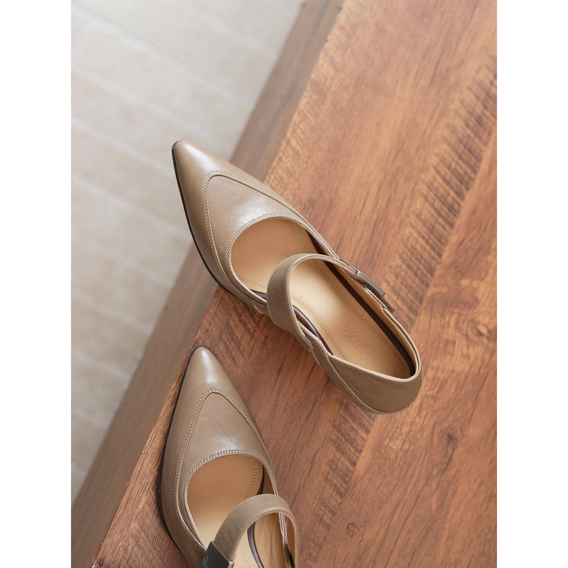 超软羊皮轻熟风尖头浅口玛丽珍鞋