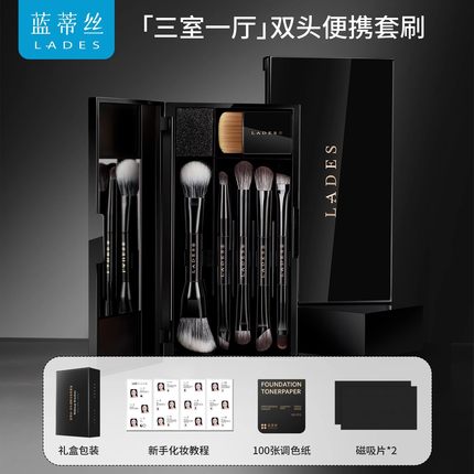 日本甄选三室一厅11支双头便携化妆刷套盒粉底点彩铺色卧蚕眼影刷