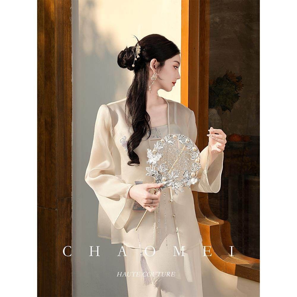 年终特惠【洛神赋】新中式桑蚕丝刺绣真丝v领衬衫吊带裙套装女