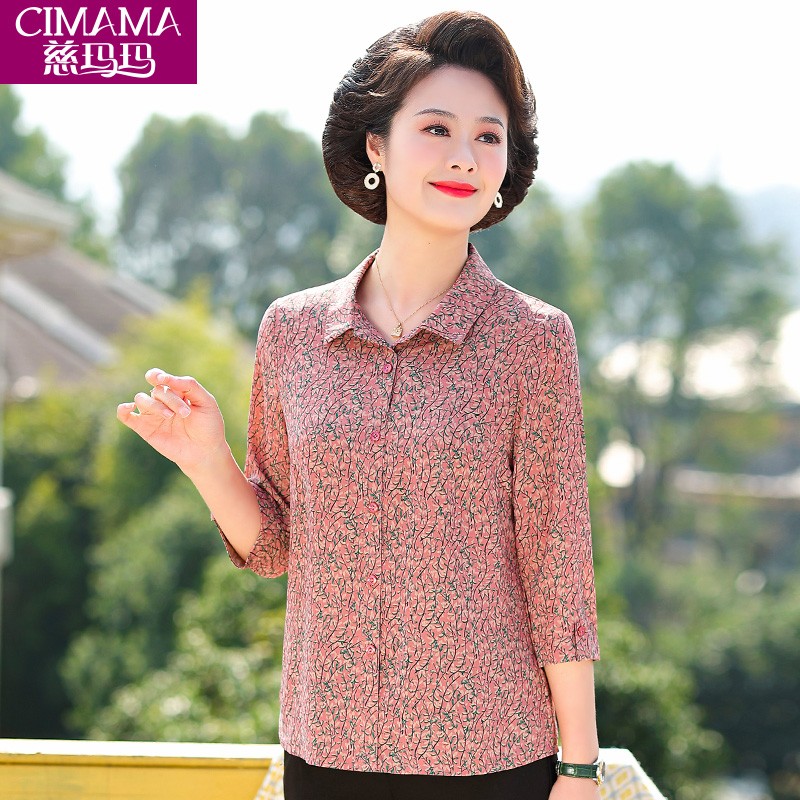 中老年女春季洋派衬衫40岁50上衣服套装妈妈春夏装七分袖衬衫T恤