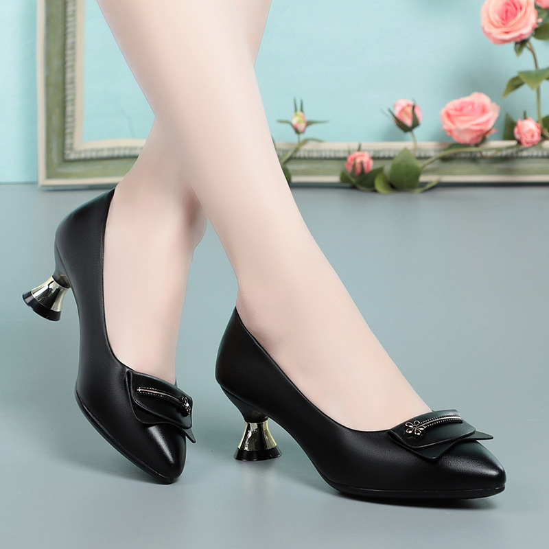 妈妈鞋单鞋软皮软底春秋季中年妇女鞋中跟粗跟皮鞋舒适中老年女鞋