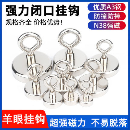 磁铁强磁挂钩强力磁性挂环圆环磁吸挂钩闭合磁铁挂钩固定器吸铁石