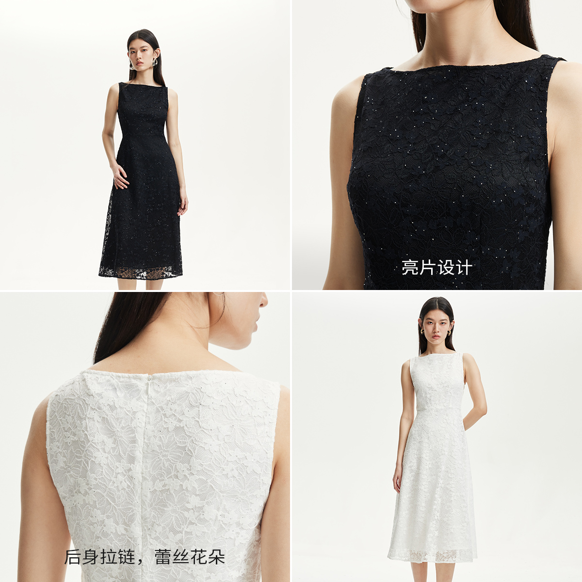 绫致Vero Moda连衣裙25圆领亮片蕾丝花朵内里加衬A字裙