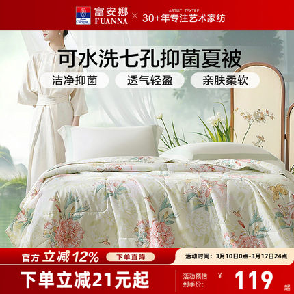 富安娜夏被可水洗空调被七孔纤维透气抑菌纤维被子被芯床上用品