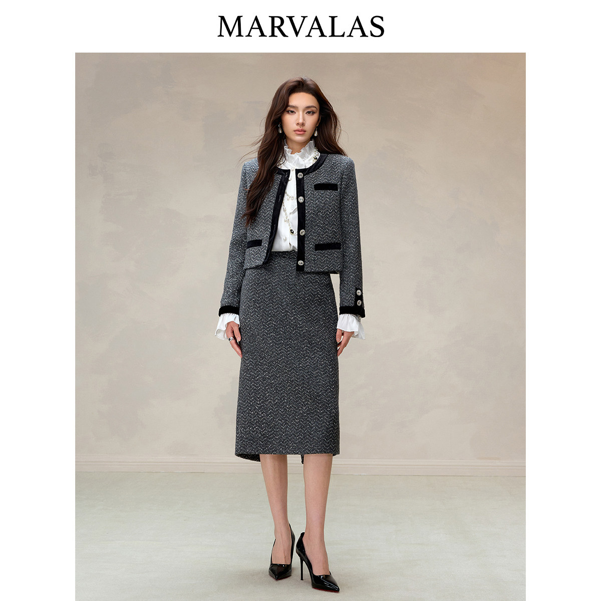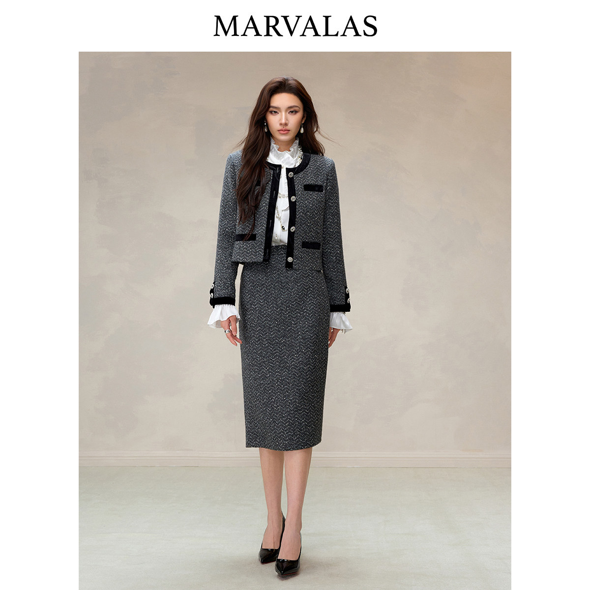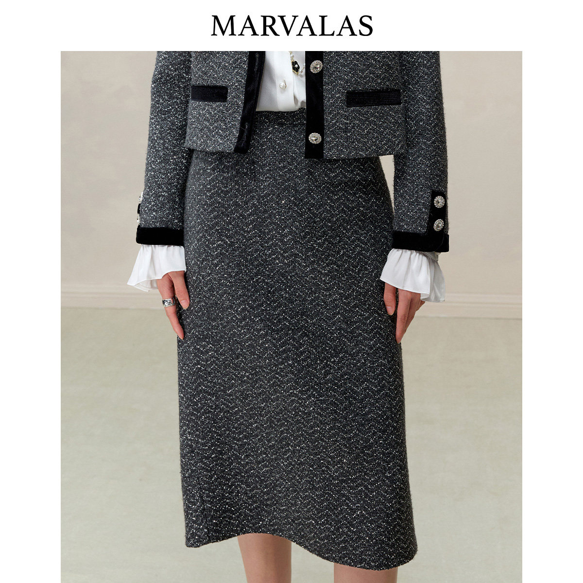 【商场同款】曼德诗优雅半身裙2026春季新款绵羊毛混纺开叉直筒裙
