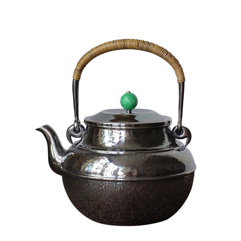 纯银时代 做旧锤纹银壶 足银999烧水壶纯手工茶壶大小号精致定制