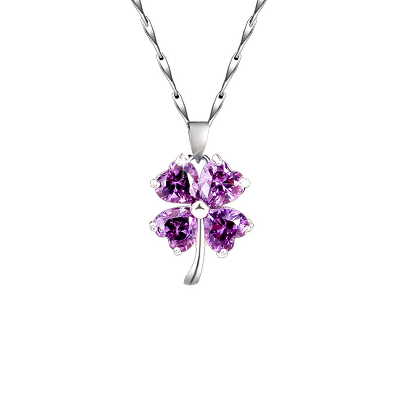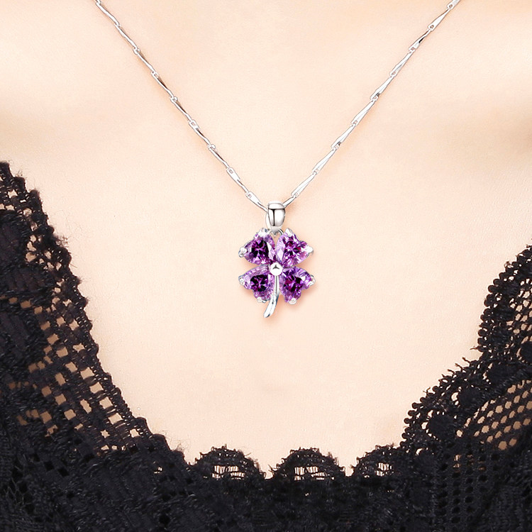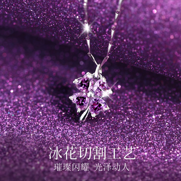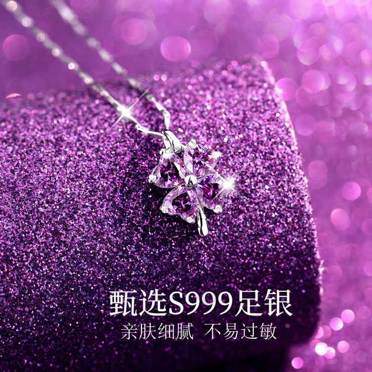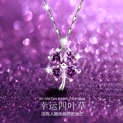 999纯银/紫色四叶草/项链