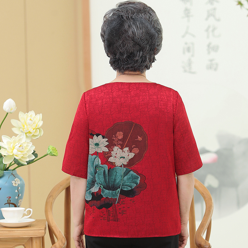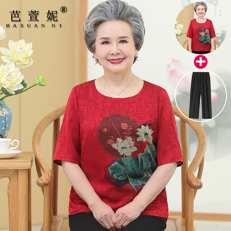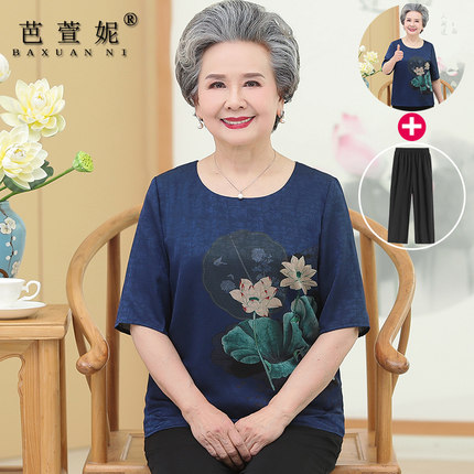 老年人夏装女短袖t恤奶奶套装加大码老太太老人衣服老年妈妈上衣