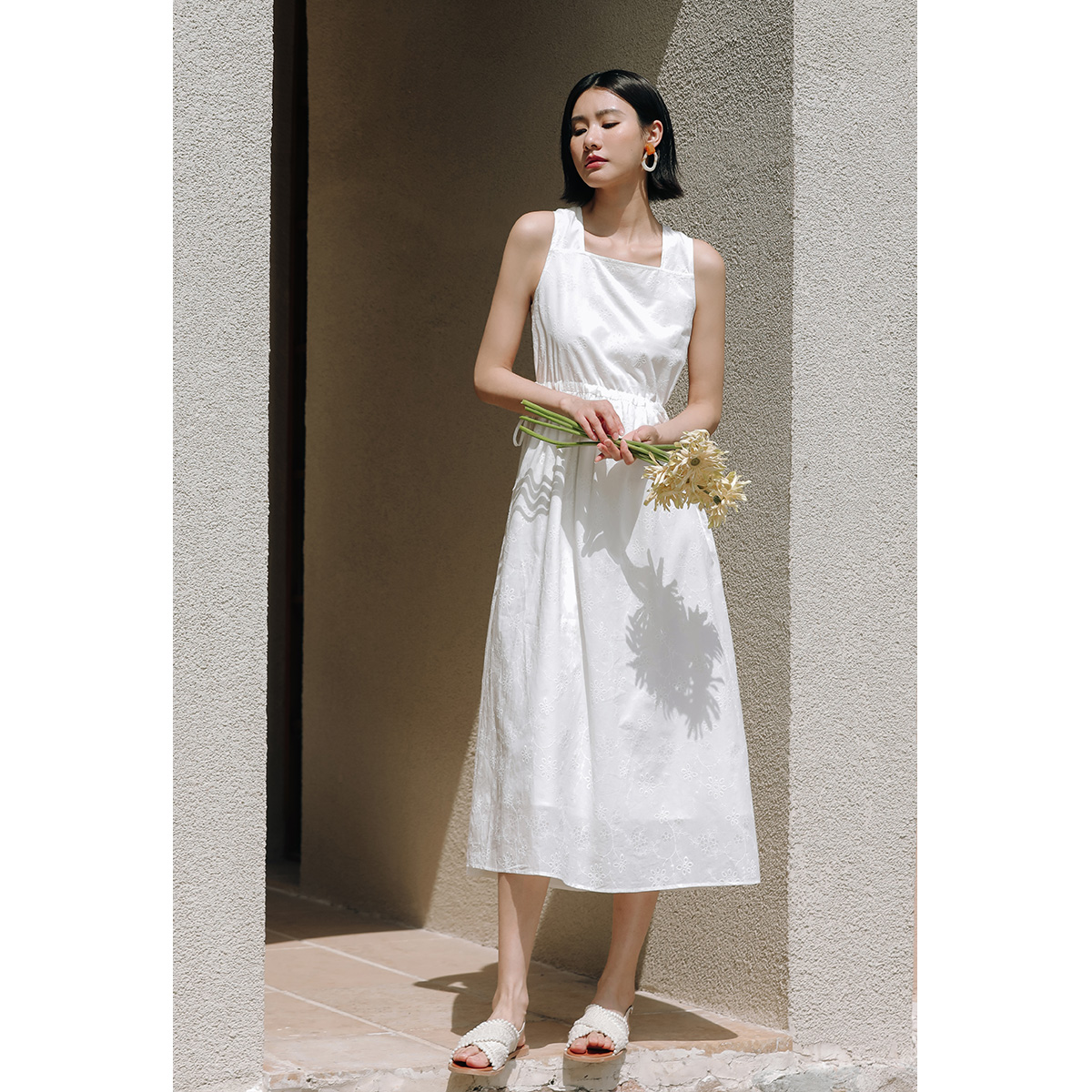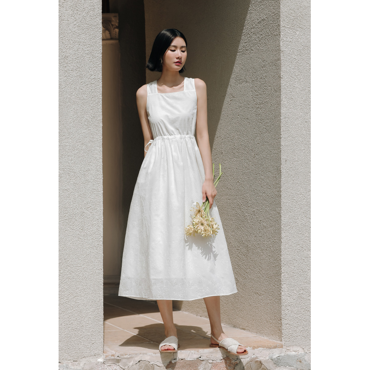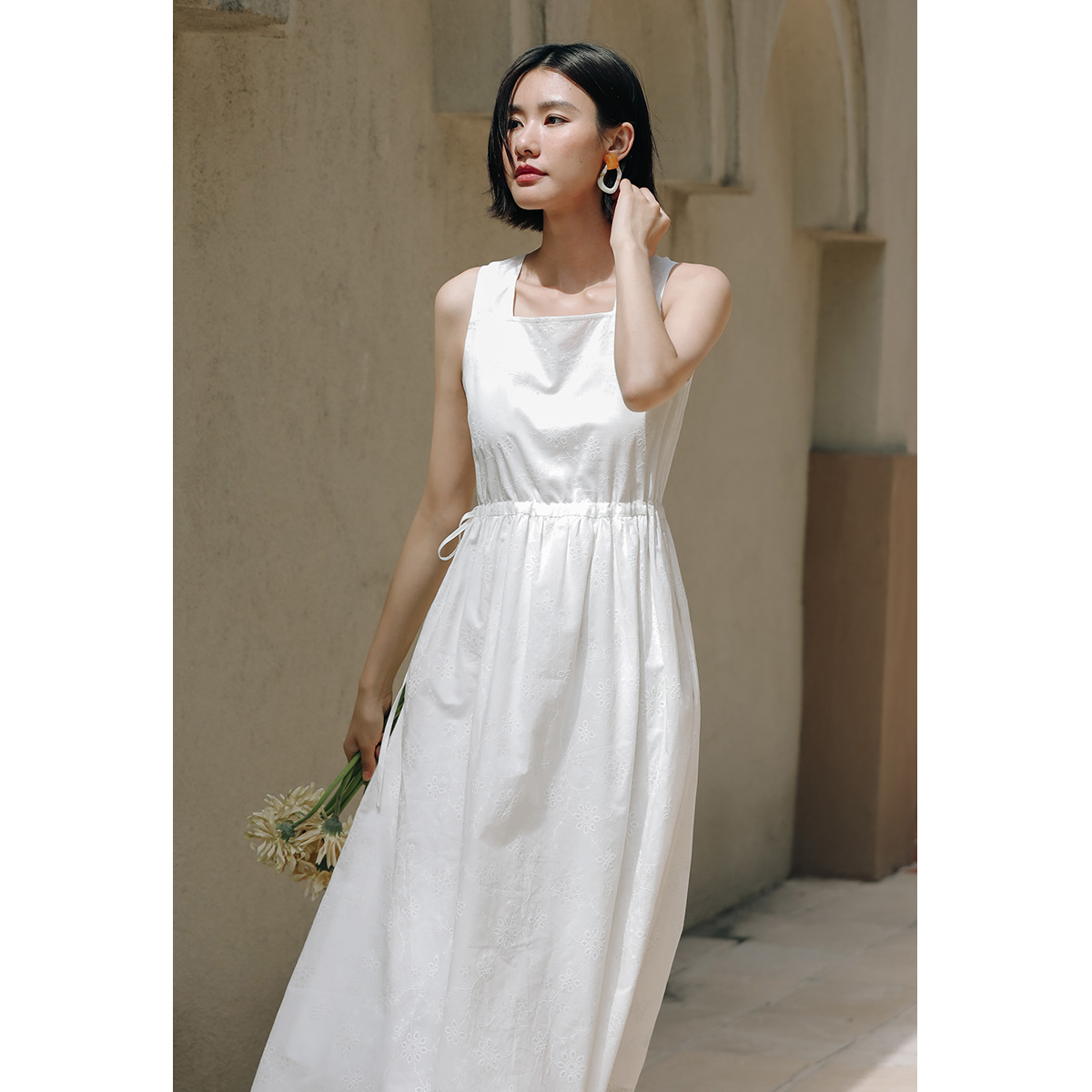 弥古白色吊带裙宽肩带背心连衣裙高级感女夏初恋小白裙度假沙滩裙
