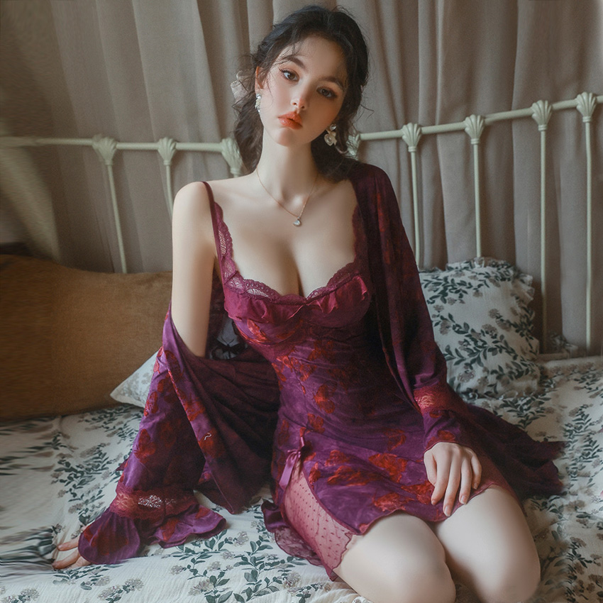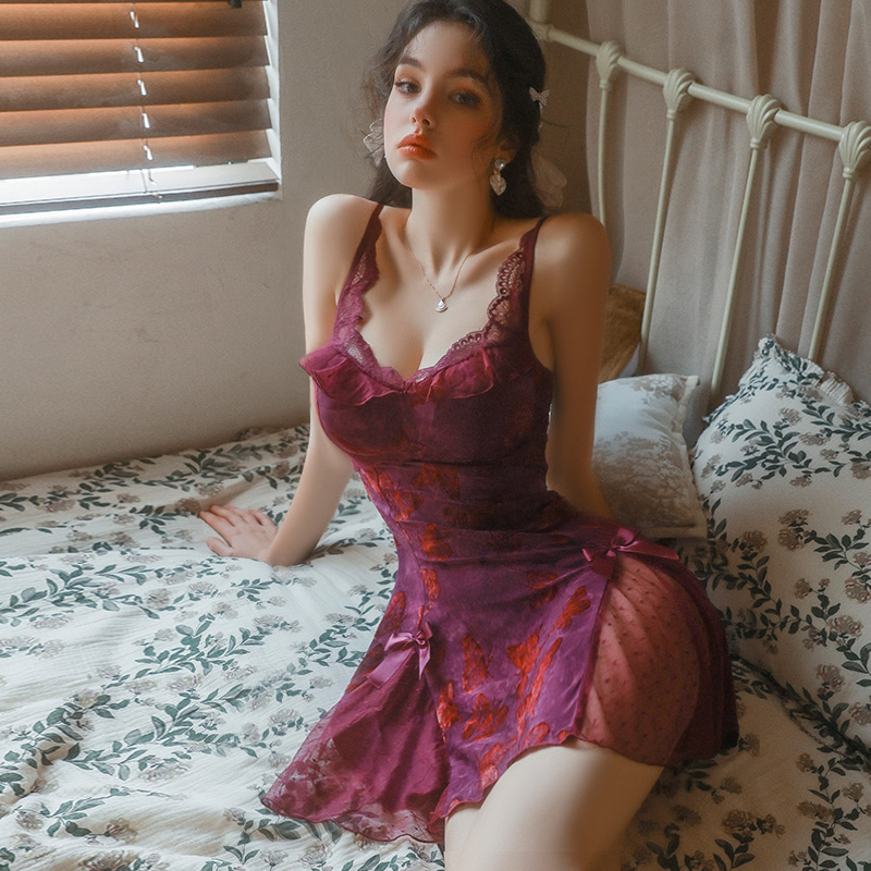 凯朱莉性感睡衣女款春秋季2025新款带胸垫冰丝蕾丝吊带睡裙纯欲风