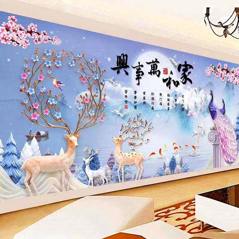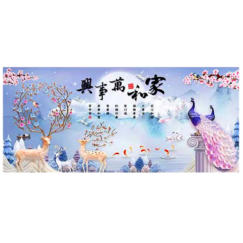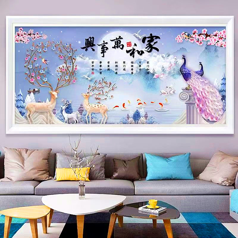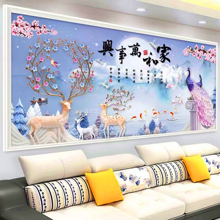 串珠绣十字绣圆珠客厅家和万事兴全珠子绣满绣麋鹿穿珠孔雀彩珠