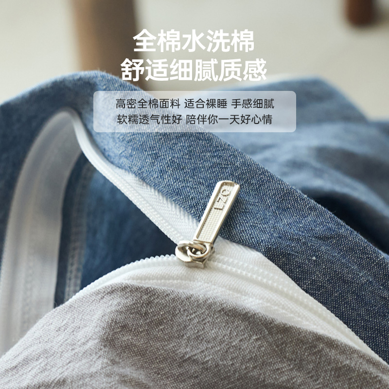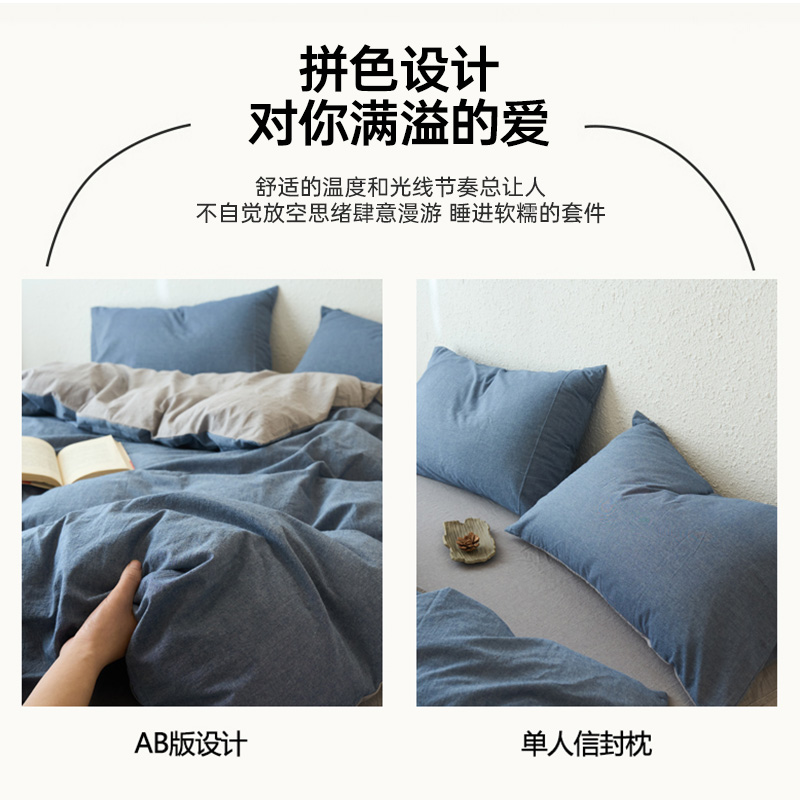 无印良品A类全棉水洗棉四件套纯棉床单被套床上用品床笠款三件套
