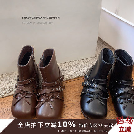 潮酷韩版儿童马丁靴女蝴蝶结女童短靴单靴女孩皮靴英伦风洋气靴子