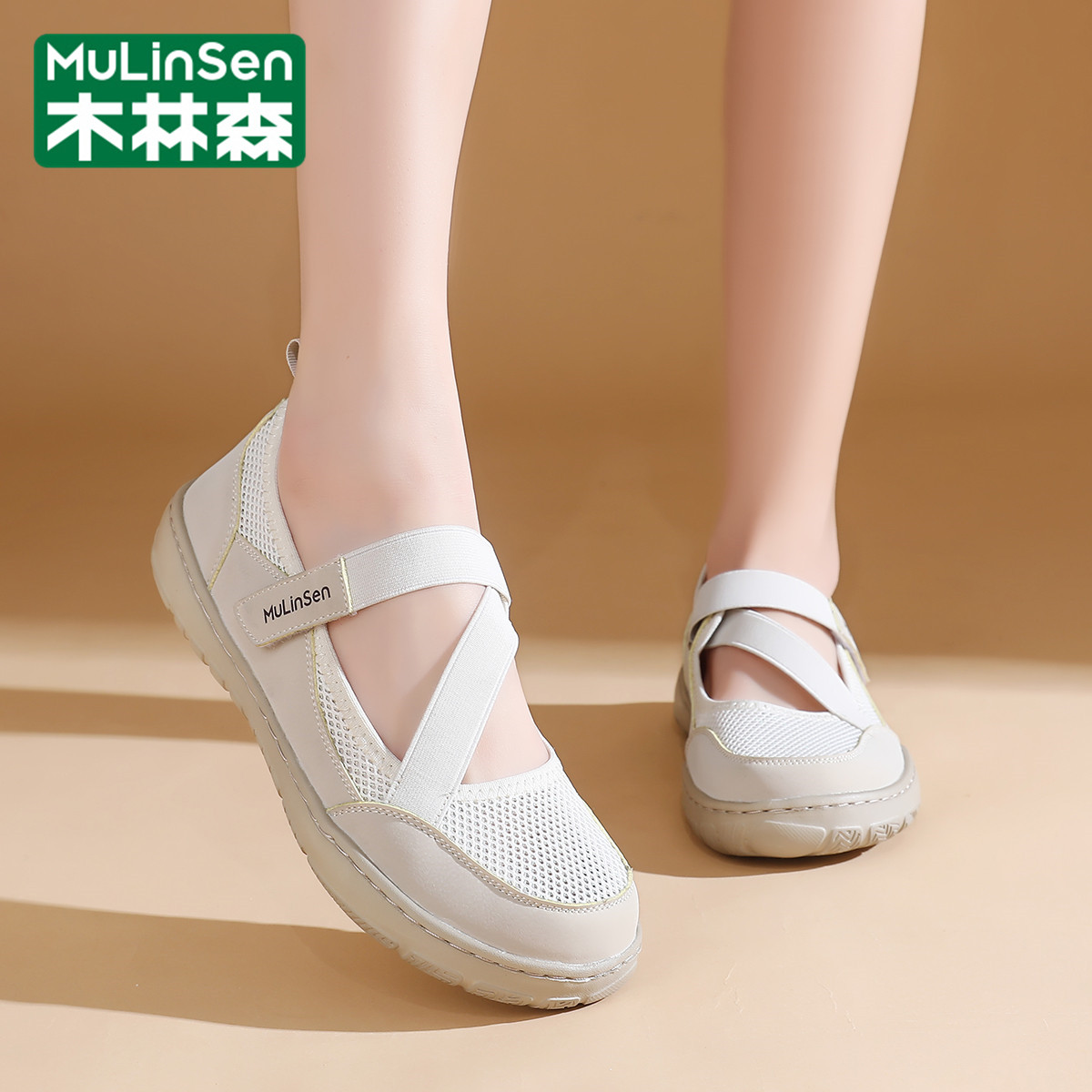 木林森网鞋女款2025新款夏季网眼镂空透气软底妈妈健步老北京布鞋