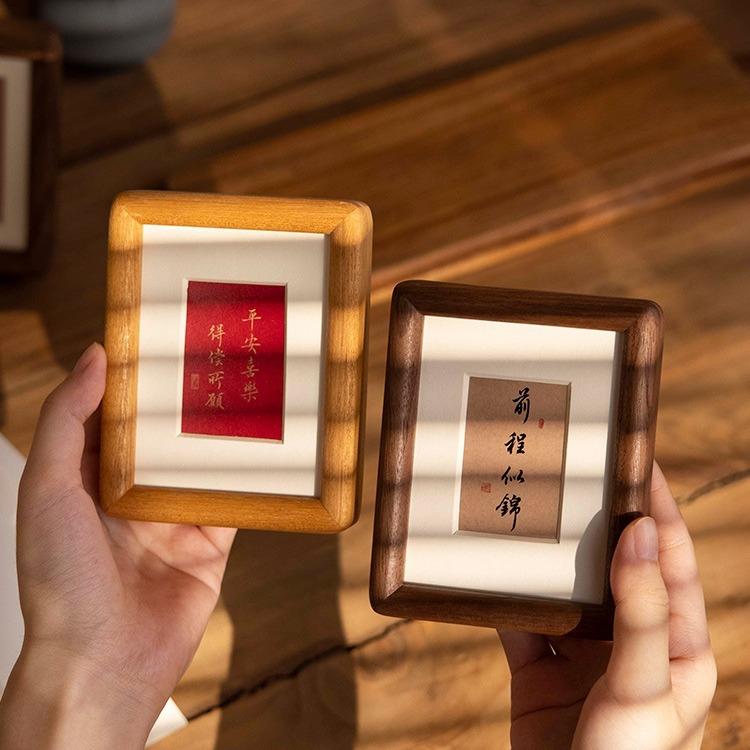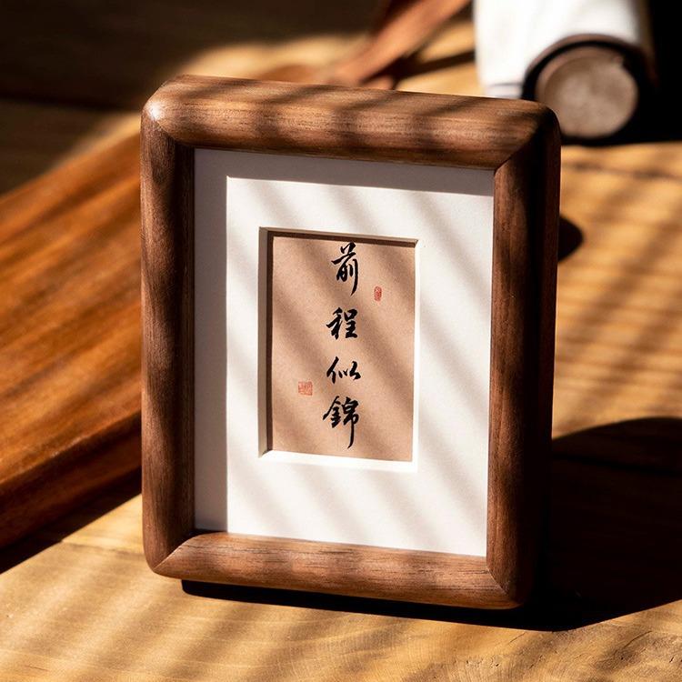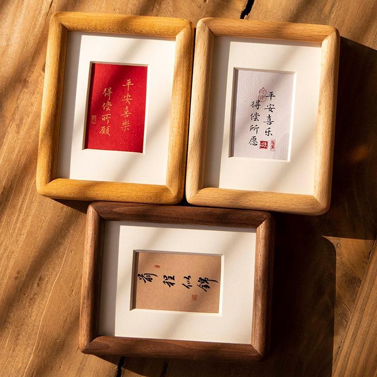 洗照片做成相框实木榫卯摆台框3寸4毛笔字中式书法框架迷你mini框