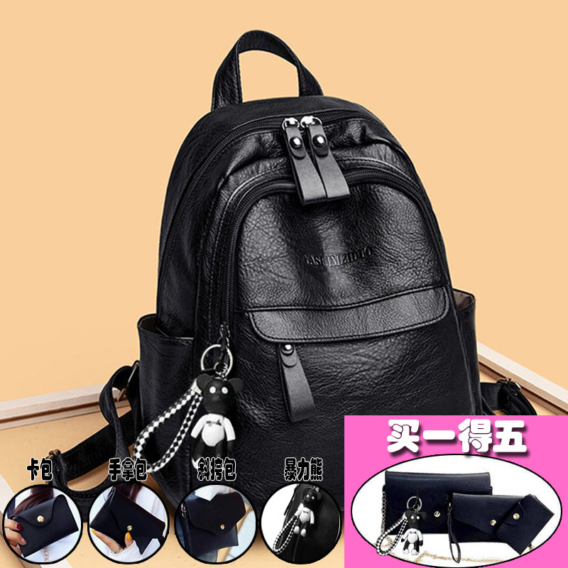 2025新款韩版时尚双肩包简约女包轻便书包休闲旅行大容量软皮背包