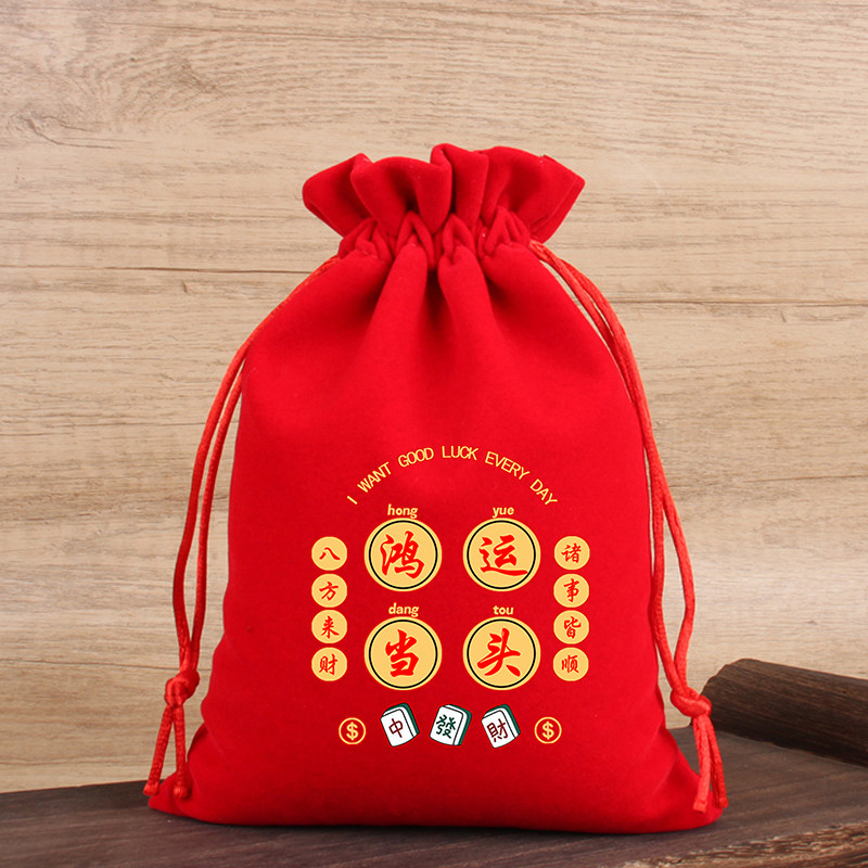 【原创爆款】财运亨通暴富发财红色绒布袋日进斗金福袋礼品礼物