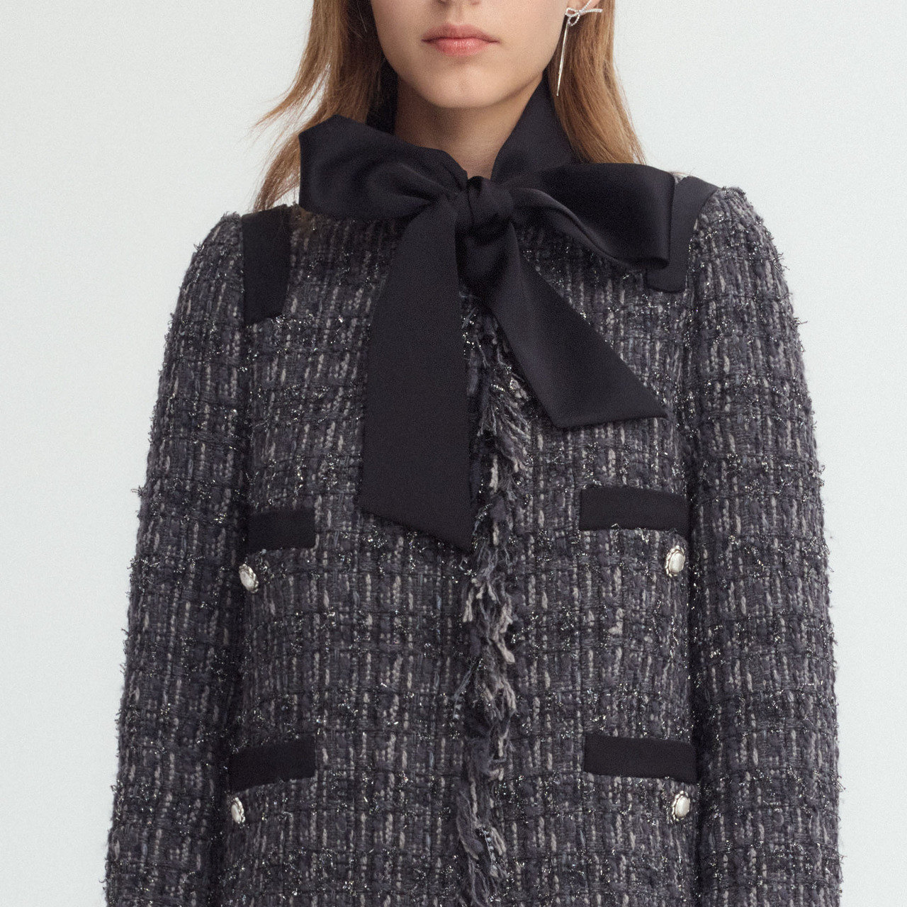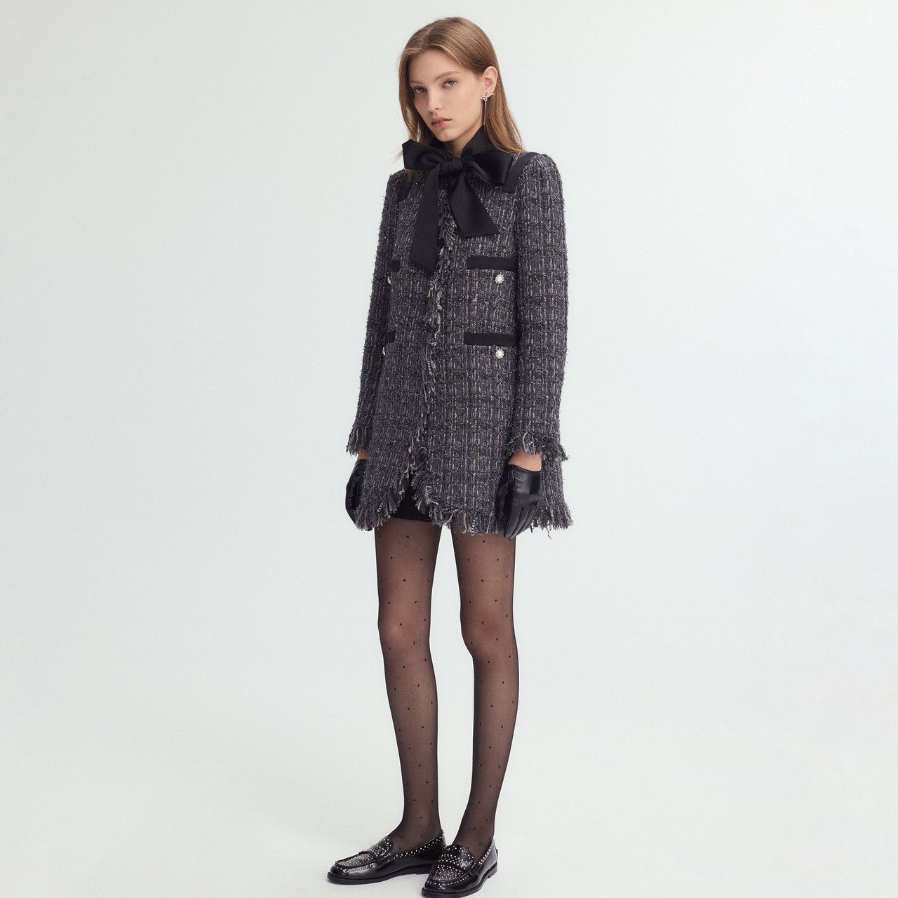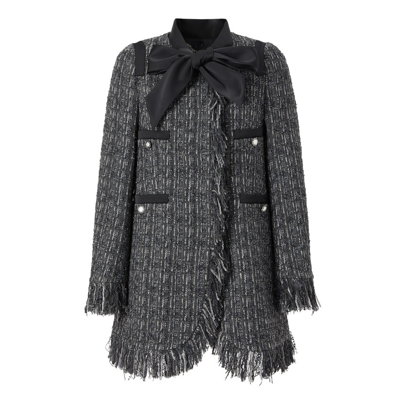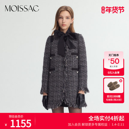 商场同款 摩萨克冬新款小香风粗花呢连衣裙式长款大衣外套女
