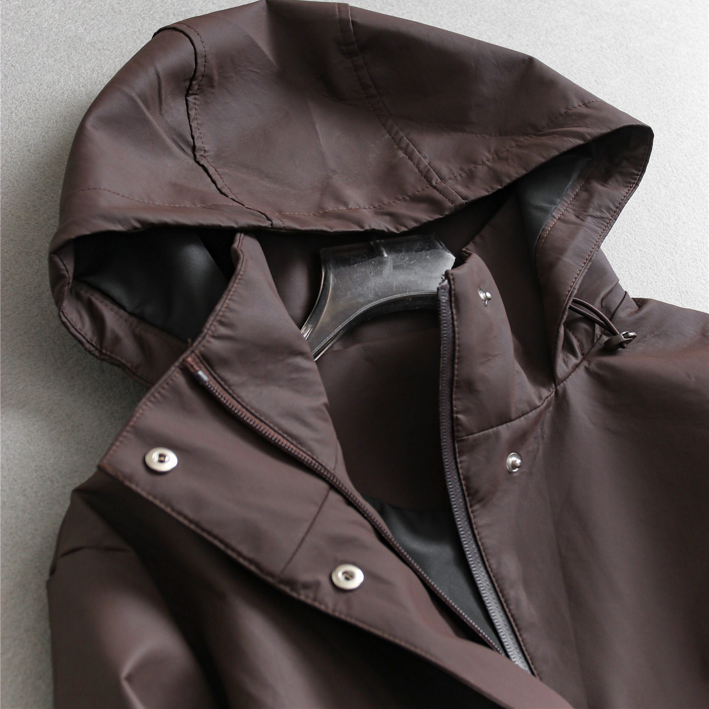纯色连帽压胶防风过膝长款夹克外套2025秋季新款长袖女装风衣N973