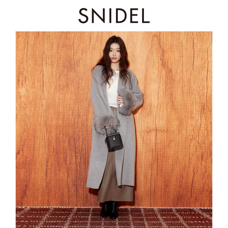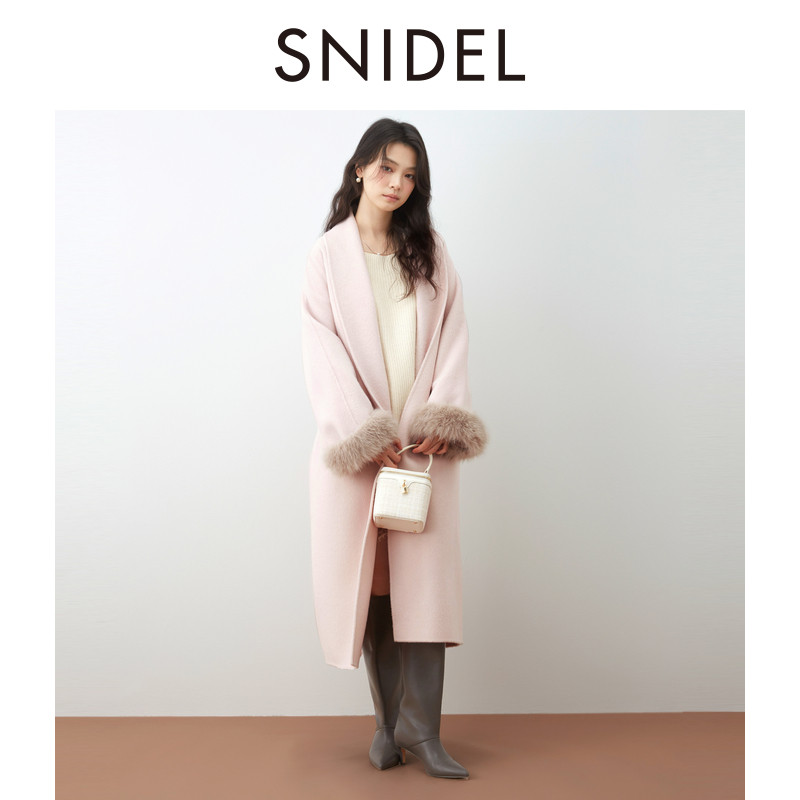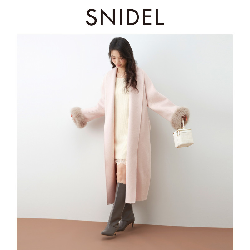 SNIDEL2025秋冬新品翻领毛毛袖毛呢大衣中长款羊毛外套SWFC254316