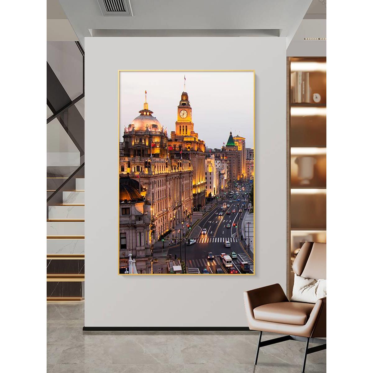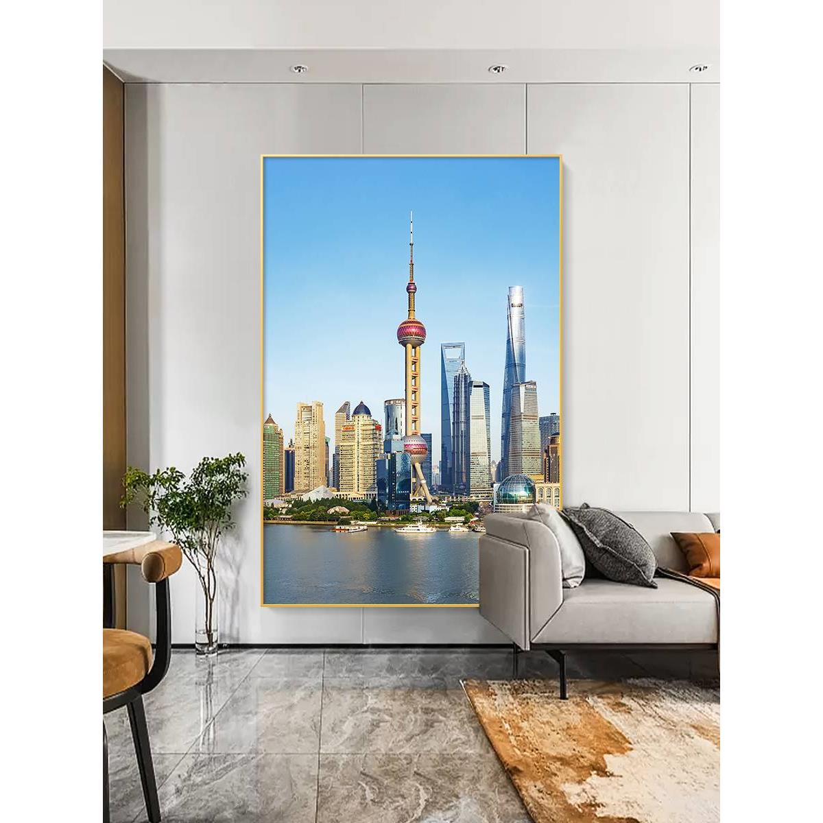 装饰画城市风景建筑上海东方明珠夜景摄影简约现代高级感玄关挂画