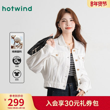 热风女士牛仔夹克外套上衣韩系简约时尚纯棉白色百搭宽松休闲夹克