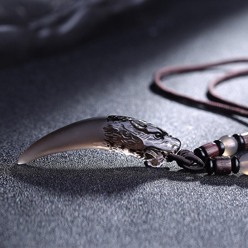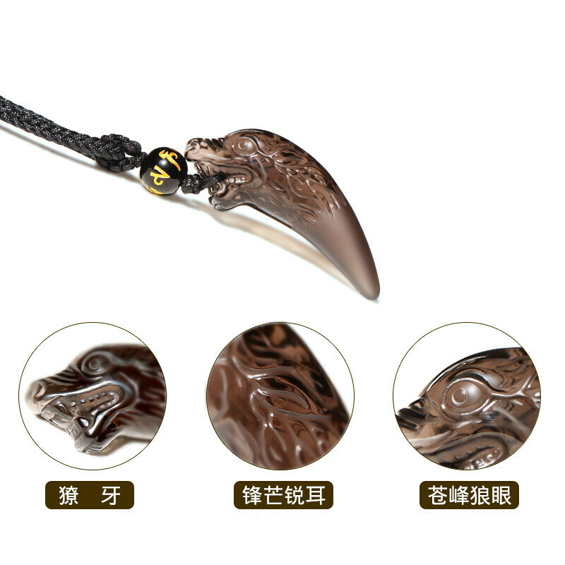 天然冰种黑曜石狼牙吊坠送男士霸气生日礼物挂坠女潮流项链护身符