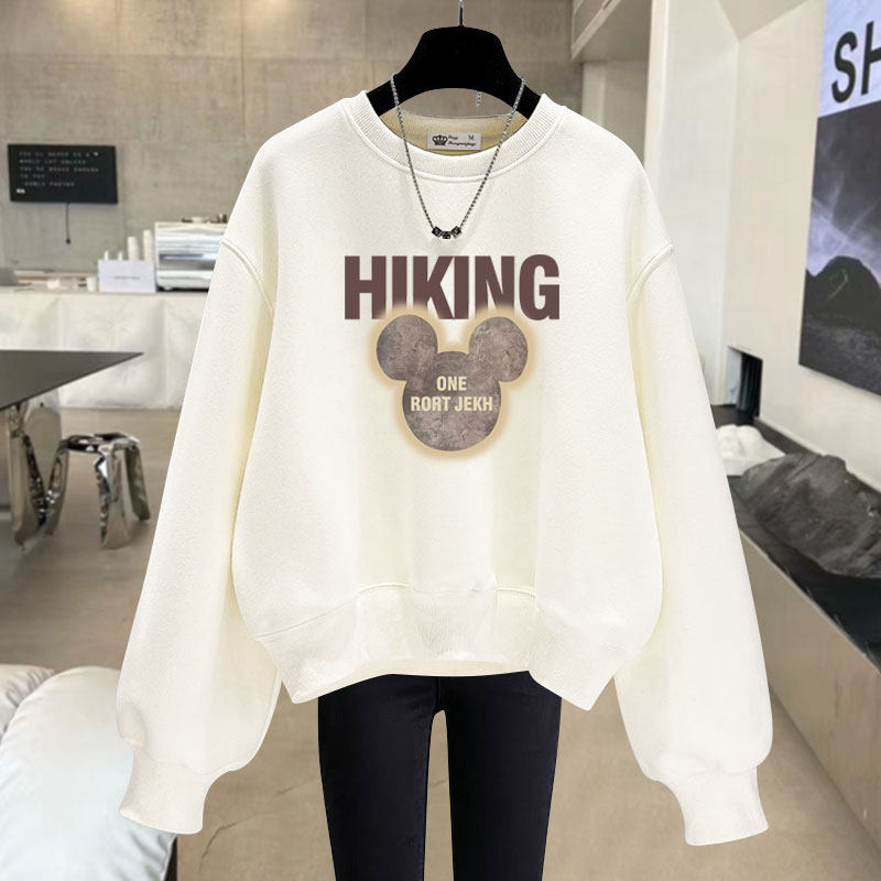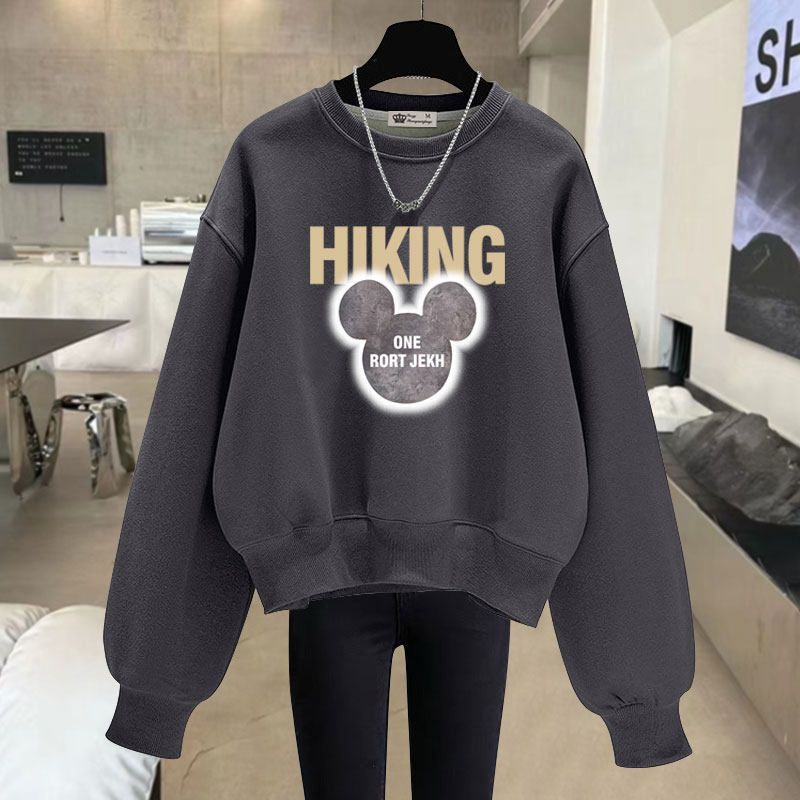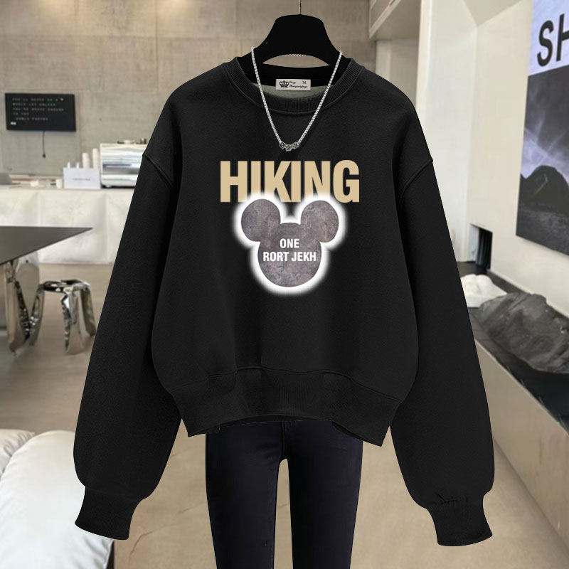 2025春秋冬季新款字母卡通加绒加厚宽松套头长袖圆领短款卫衣女潮