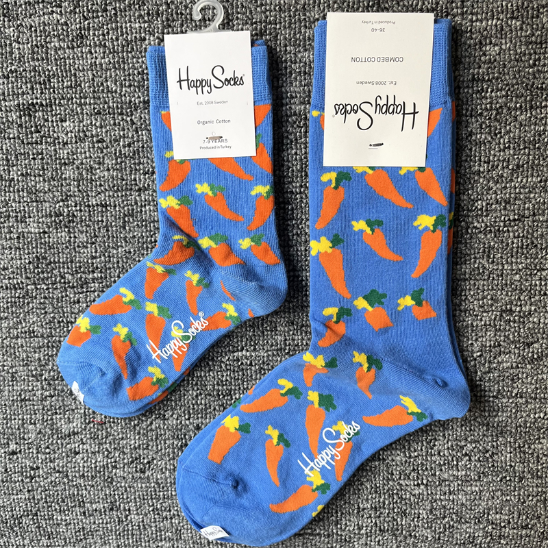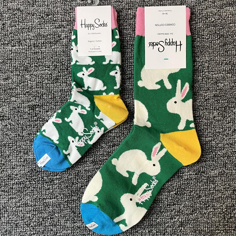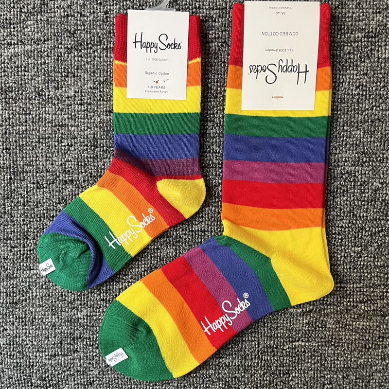 happysocks亲子款潮牌袜妈妈儿童同款四季纯棉袜男女宝宝中筒袜子