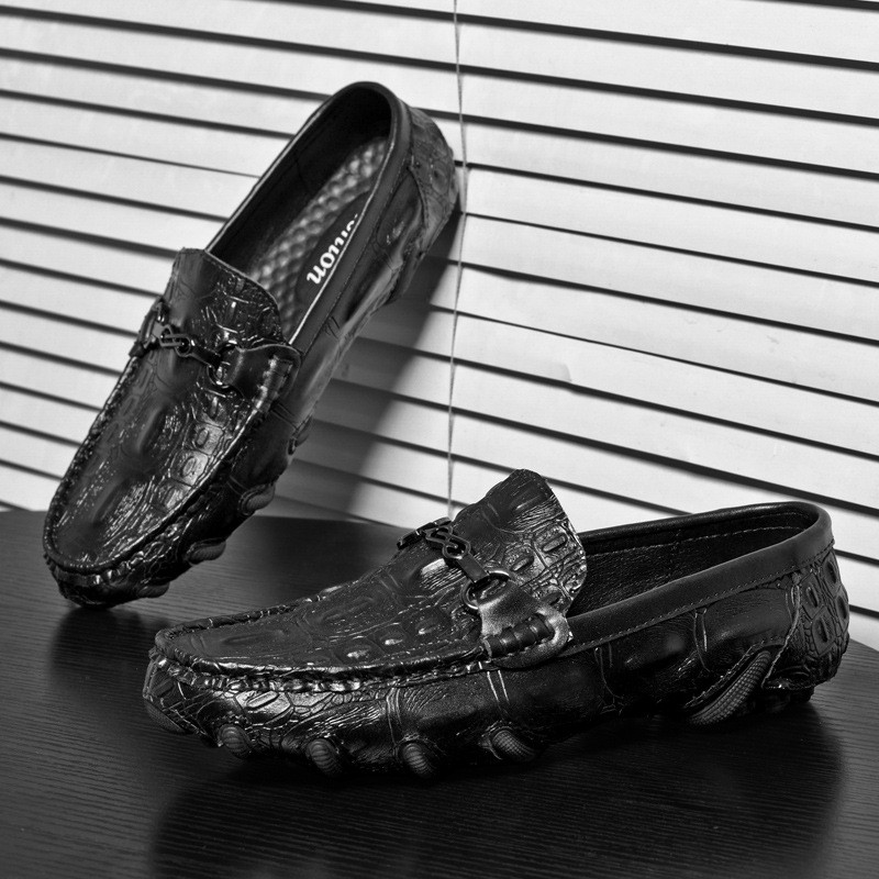 男士英伦休闲皮鞋2025爆款春夏一脚蹬豆豆鞋商务大码男鞋xc07