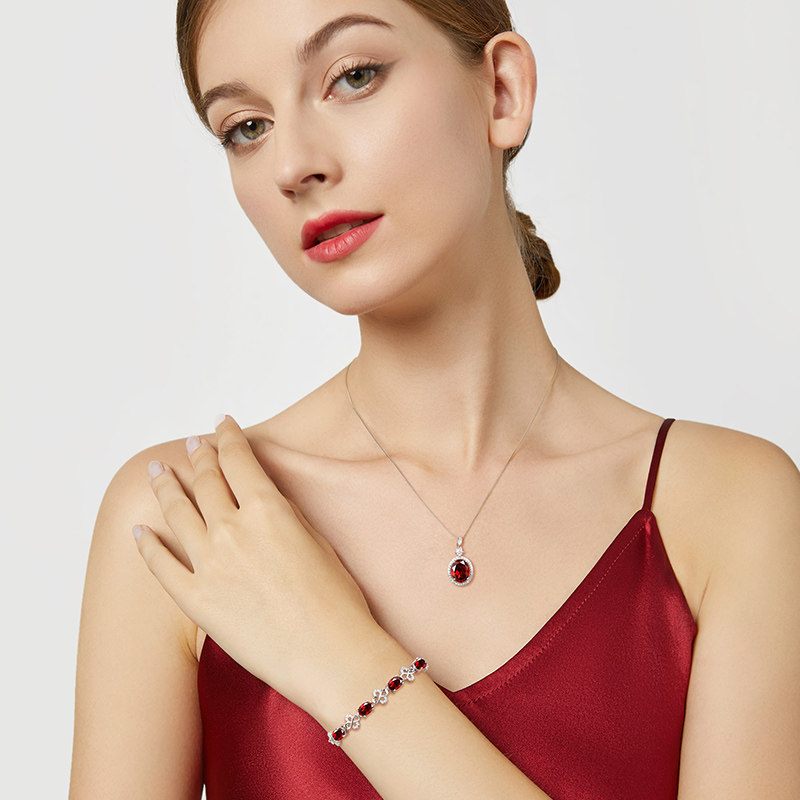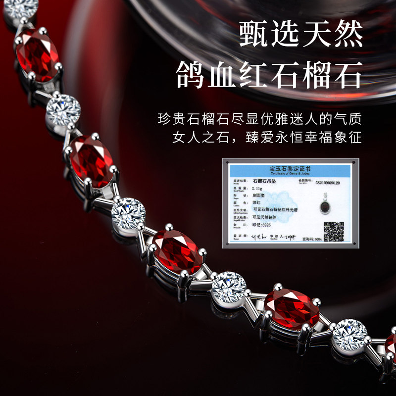 鸽血红石榴石手链女轻奢设计鹅蛋形宝石手镯女生礼物高级感首饰