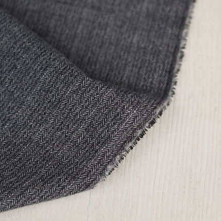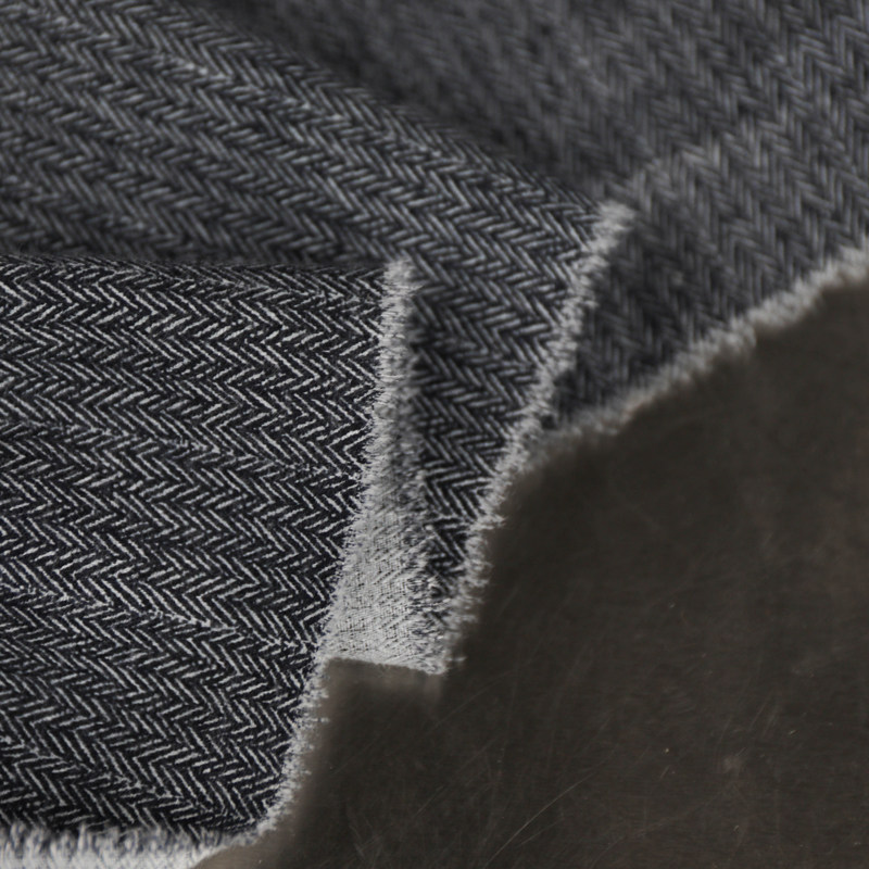意大利进口薄款黑白灰色人字鱼骨纹肌理细腻砂洗磨毛印花纯棉面料