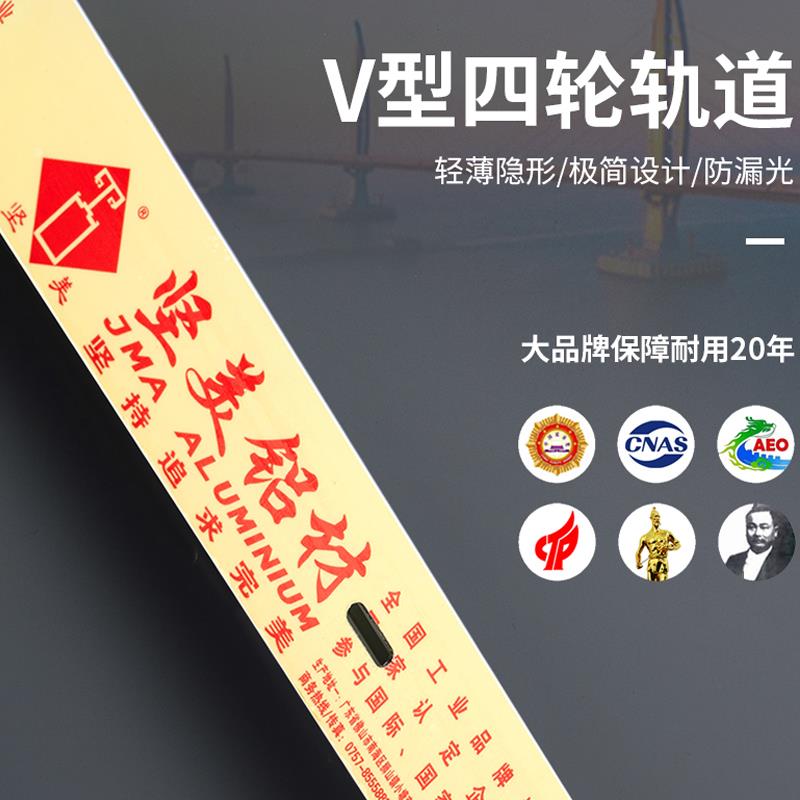 恒辉超薄免打孔窗帘轨道隐形滑轨顶装消音飘窗V型滑道铝合金单轨