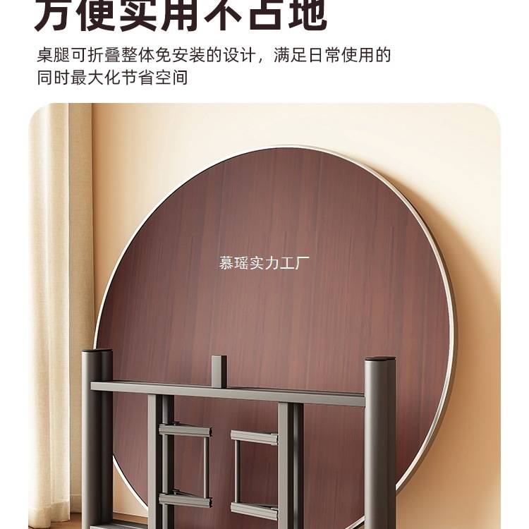 实木圆形餐桌椅组合可折叠吃饭桌子家用桌面板新中式一桌四椅商用