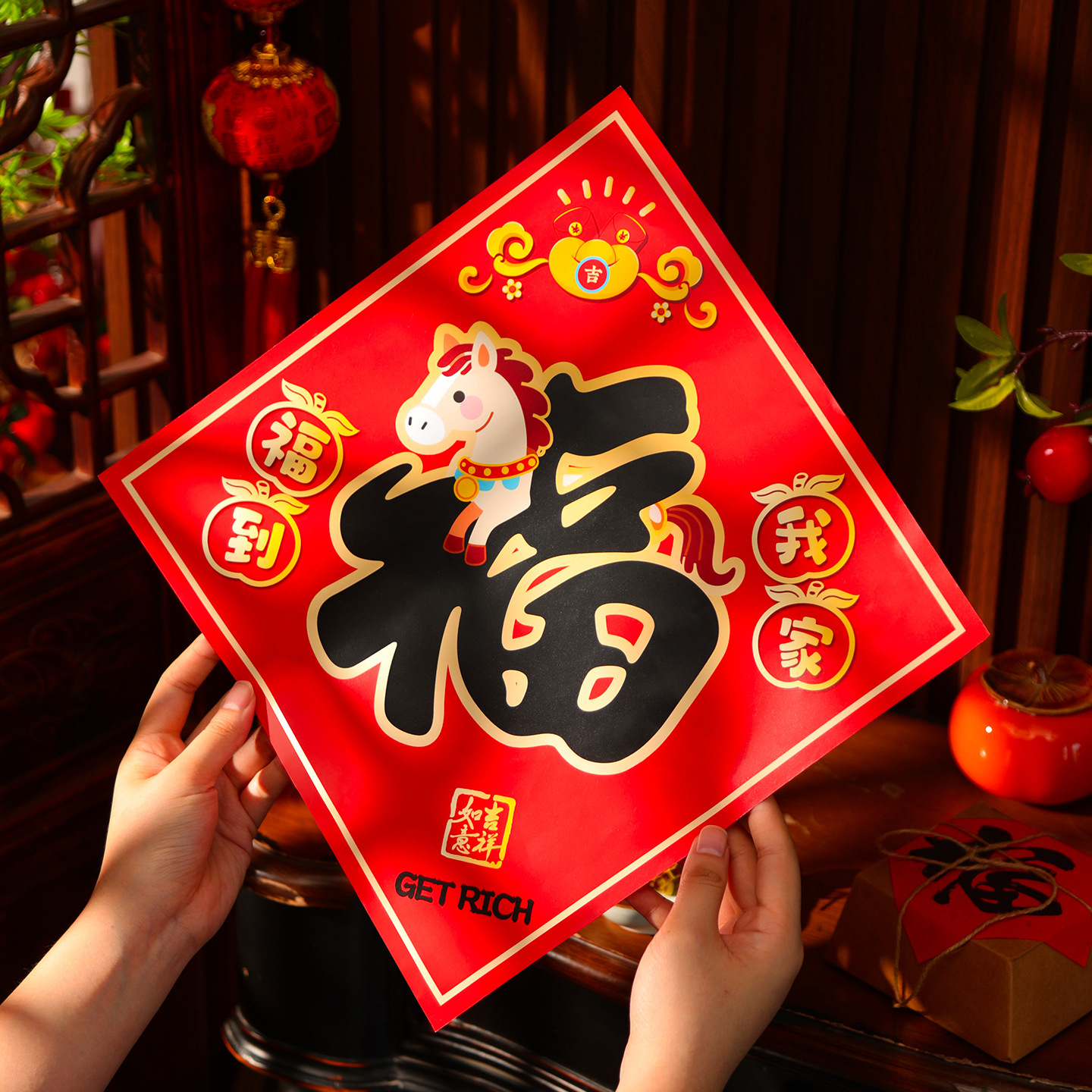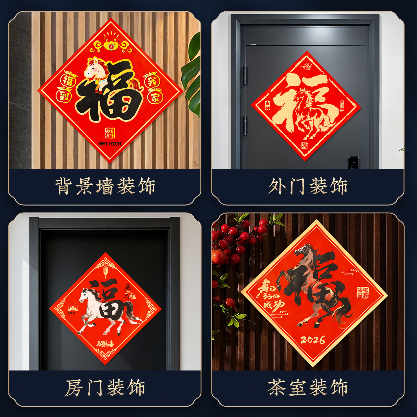 2026马年福字门贴春节装饰新年入户大门贴纸过年家用布置生肖