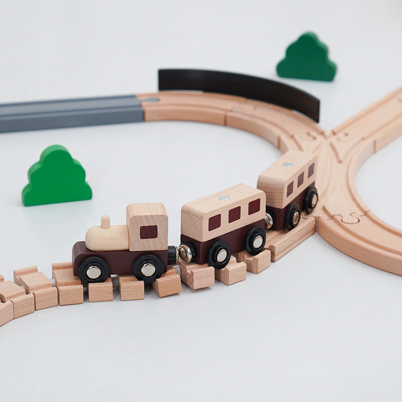 进口榉木木制火车轨道配件散轨套装兼容BIRO家益智拼插玩具