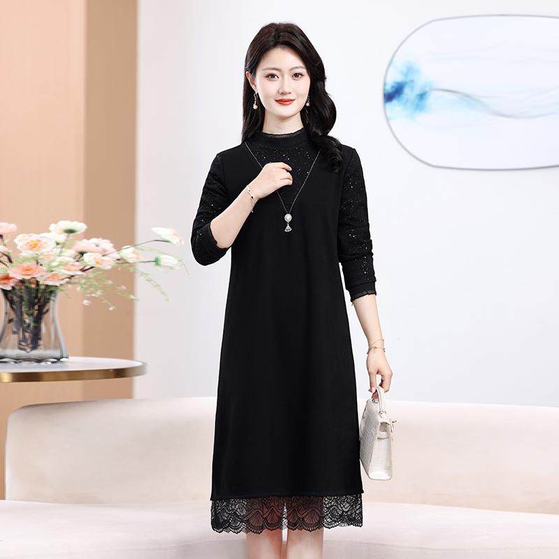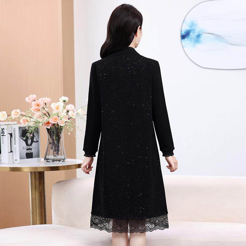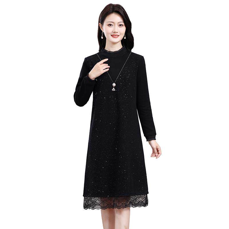 时尚妈妈装秋冬款加绒亮片连衣裙