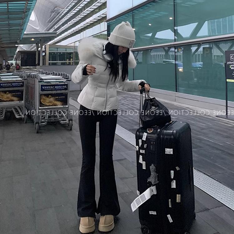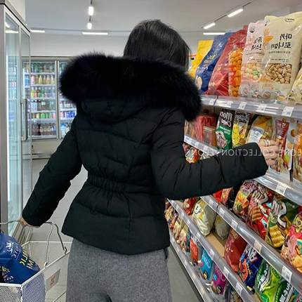 短款收腰羽绒服90白鸭绒女冬季新款修身显瘦连帽白色毛领棉服外套