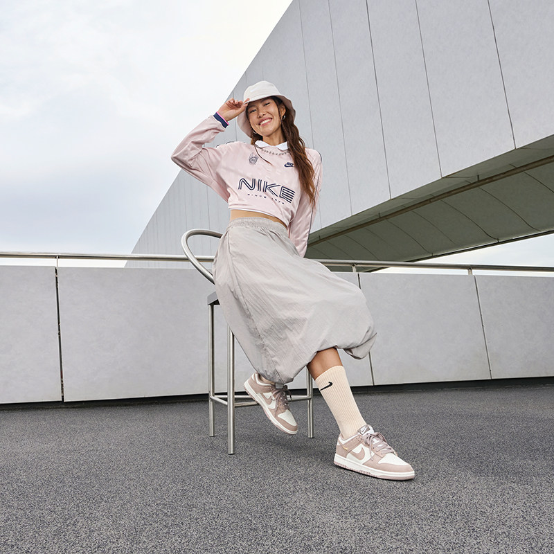 耐克女鞋冬新款运动鞋DUNK低帮复古粉白翻毛皮休闲板鞋IB4417-105