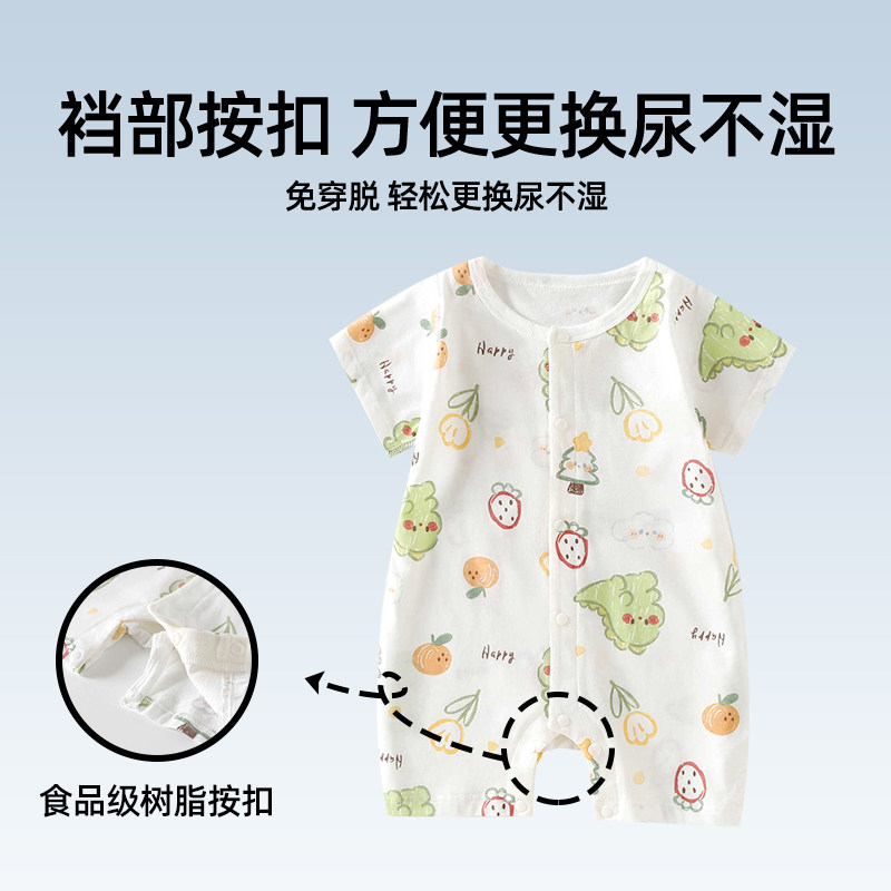 婧麒宝宝连体衣夏季薄款短袖婴儿纯棉女新生儿短袖哈衣爬服男透气