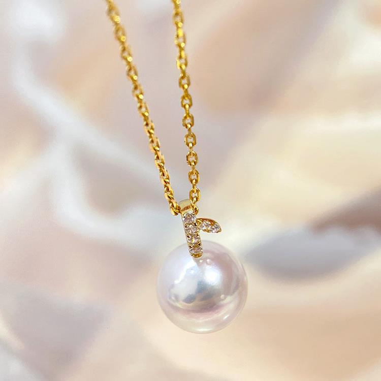 18k黄金色锆石8-10MM淡水珍珠吊坠配件经典满钻叶子正圆裸珠空托