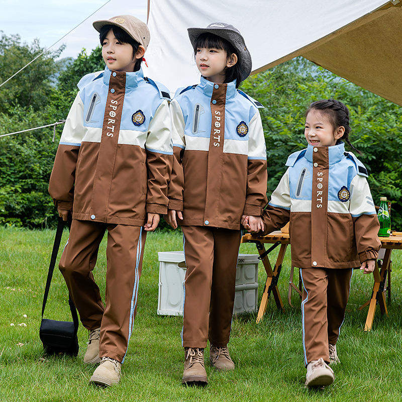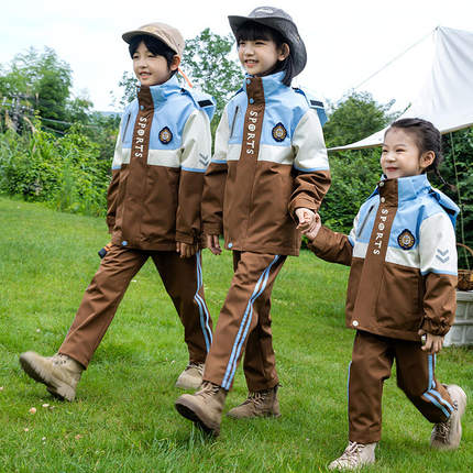 新款小学生冲锋衣套装秋冬装班服幼儿园园服三件套可拆卸英伦校服