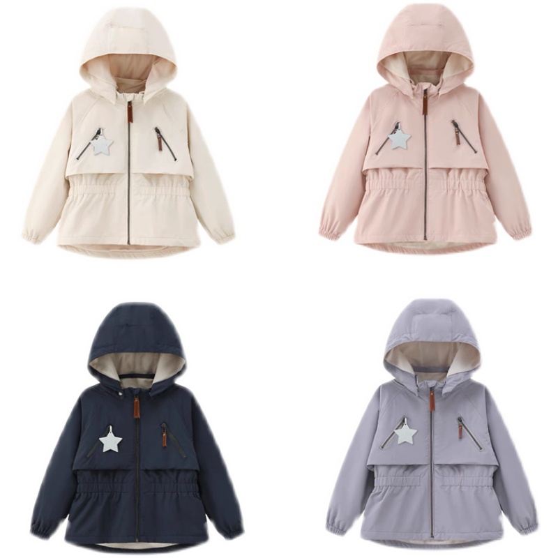秋冬新款丹麦mat男女童风衣收腰加绒长袖夹克外套防水防风冲锋衣