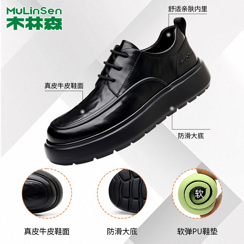 木林森厚底时尚英伦风商务皮鞋男